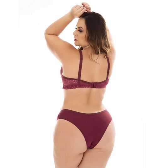 O Sutiã possui alças reforçadas dando mais sustentação aos seios, com detalhes em renda ele fica extremamente delicado e romântico. A calcinha possui leves transparências que brincam com quem vê, deixando um ar de mistério e sensualidade.